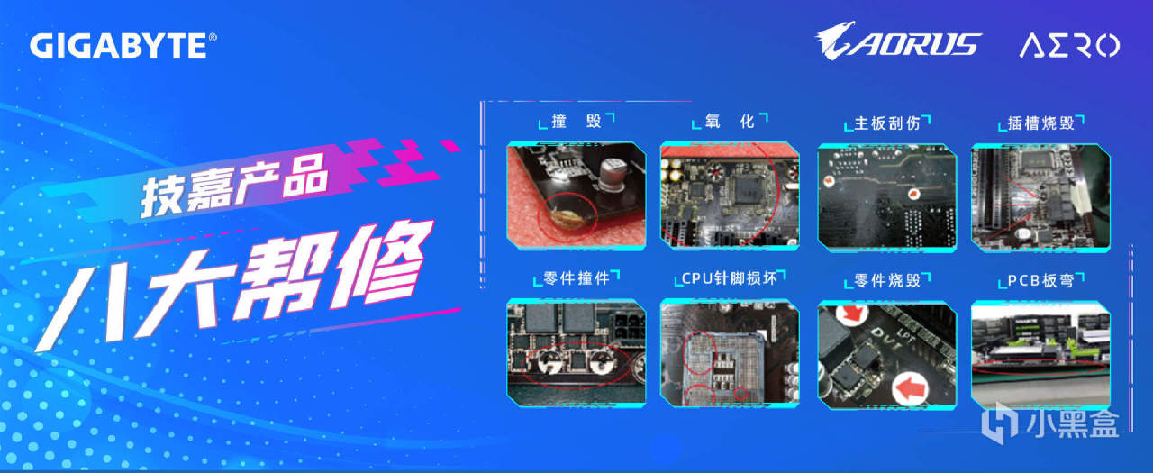 ▼技嘉主板购买1个月内登录技嘉小程序并注册,就能获得一年换新和四年延保以及保内意外、人为损坏免费原厂帮修服务,不论是主板PCB板弯还是元器件烧坏、CPU针脚损伤、甚至PBC线路划伤都在”免费帮修“的服务范围。