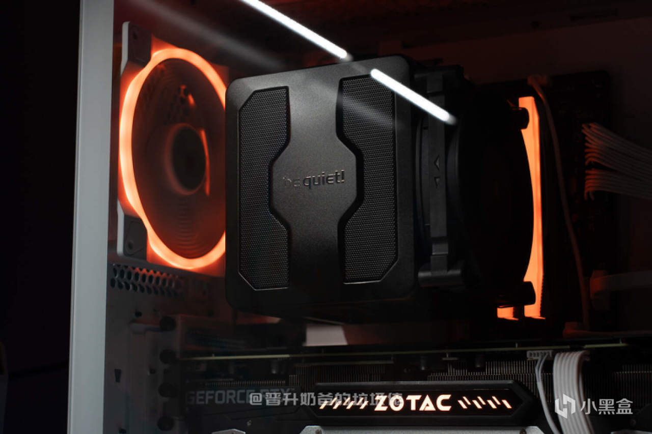 ▼两只SILENT WINGS PWM风扇一只在散热器外部,一只在两个散热鳍片中间,扇叶经过特别优化,运行起来相当安静。散热设计有主动调速开关,能够在静音模式和性能模式之间一键切换。