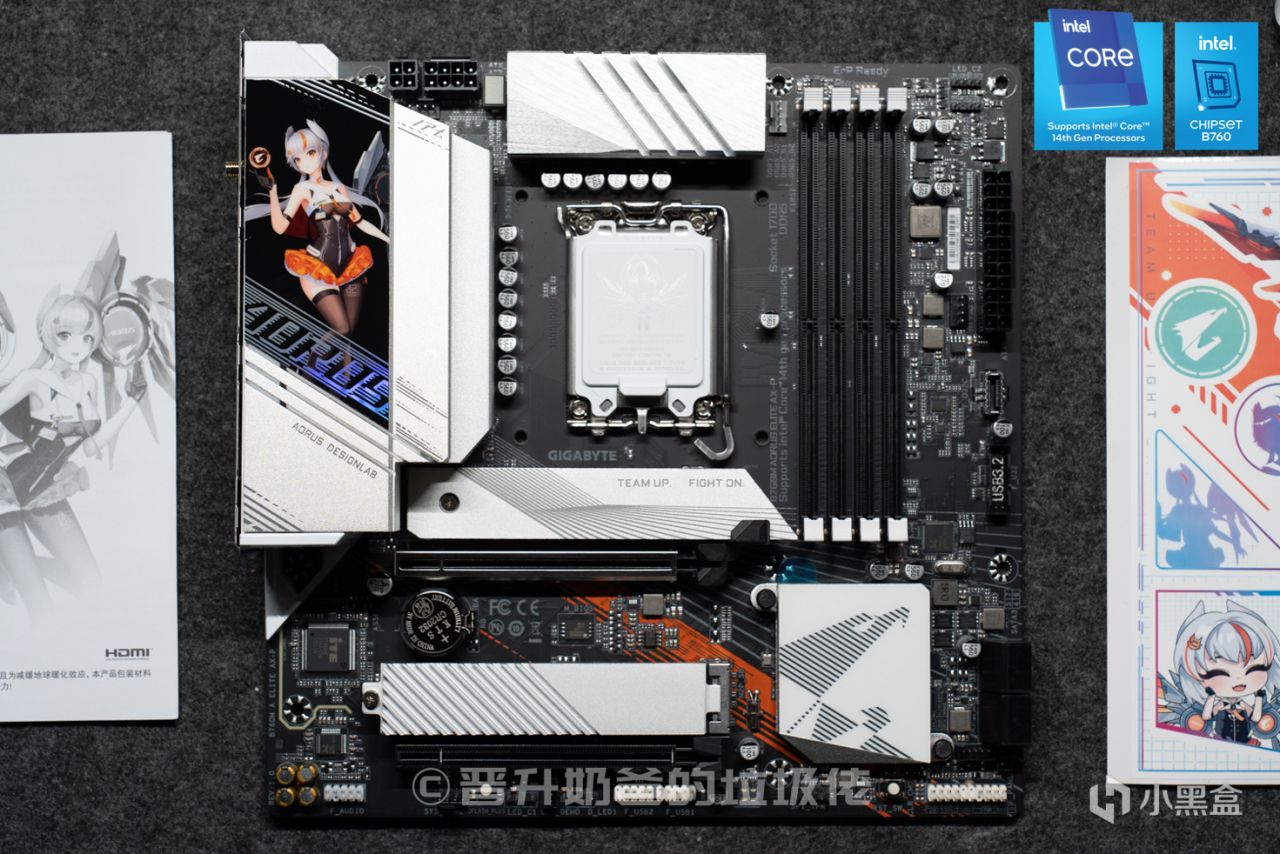 ▼技嘉B760M AORUS ELITE AX-P也被大家叫做雕妹,二次元风格直接烙印在主板的散热装甲之上,颇具辨识度,用来做二次元风格装机再适合不过,作为技嘉B760芯片组的中端力量,14代CPU也能妥妥驾驭,官号上的超频直播教程也通常是围绕着雕妹和冰雕x进行的。