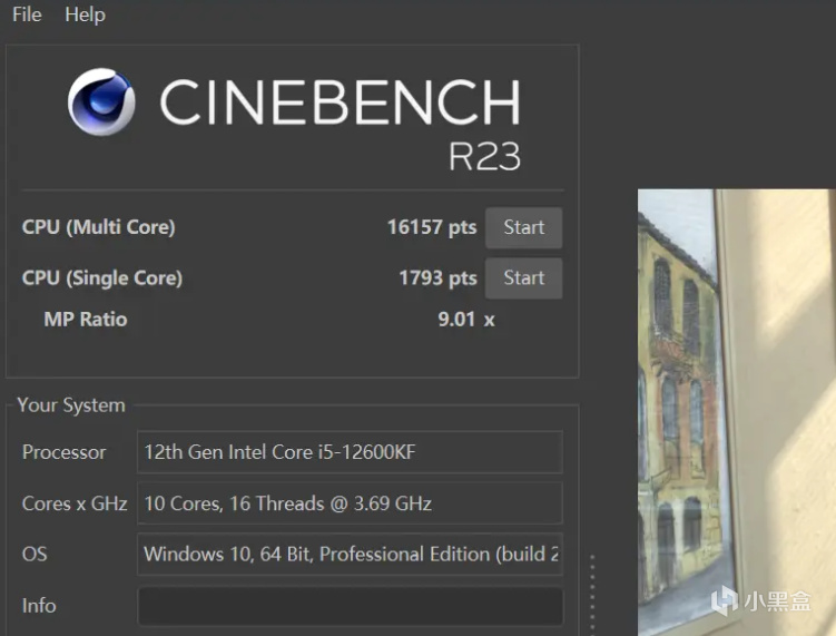 ▼Cinebench R23是一款基于Cinema 4D引擎的跨平台测试软件,可以充分测试处理器的渲染性能,我们就用Cinebench R23软件对处理器的单核和多核性能进行测试。在测试中,i5-12600KF的性能表现相较上一代产品可以说是质的飞跃,最终单核跑分1793,多核跑分16157。