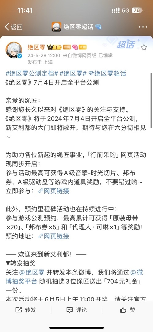 2024-5-28-12:00绝区零官方微博发布: