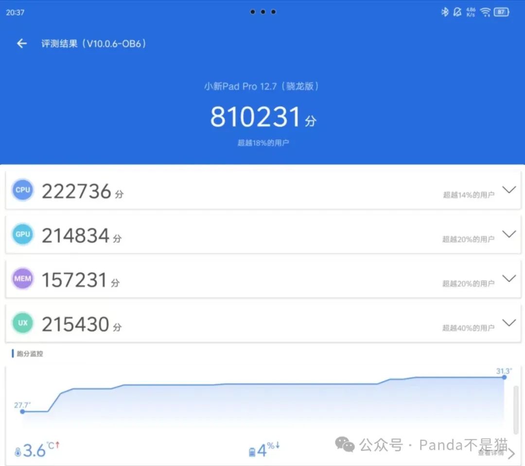 小新Pad Pro12.7搭载骁龙870处理器,尽管在2024年870已经不是旗舰水平,但这款被誉为一代神U的处理器,其性能依然不容小觑。在实际测试中,《王者荣耀》极高画质60fps流畅运行,且没有出现过度发热的问题。