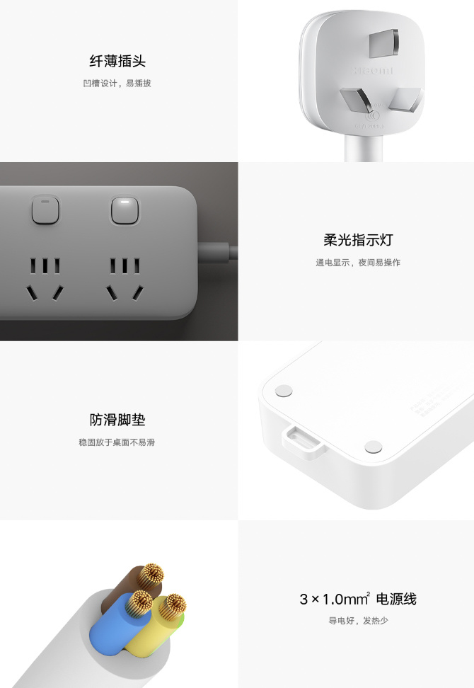 小米 4 位 4 控插线板采用独立开关控制,支持电器随用随开,不重复插拔;插线板外壳采用阻燃材料,灼热丝测试可达 750℃,符合国家标准。