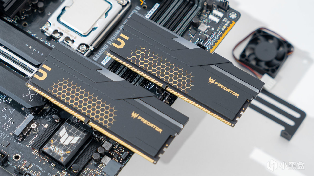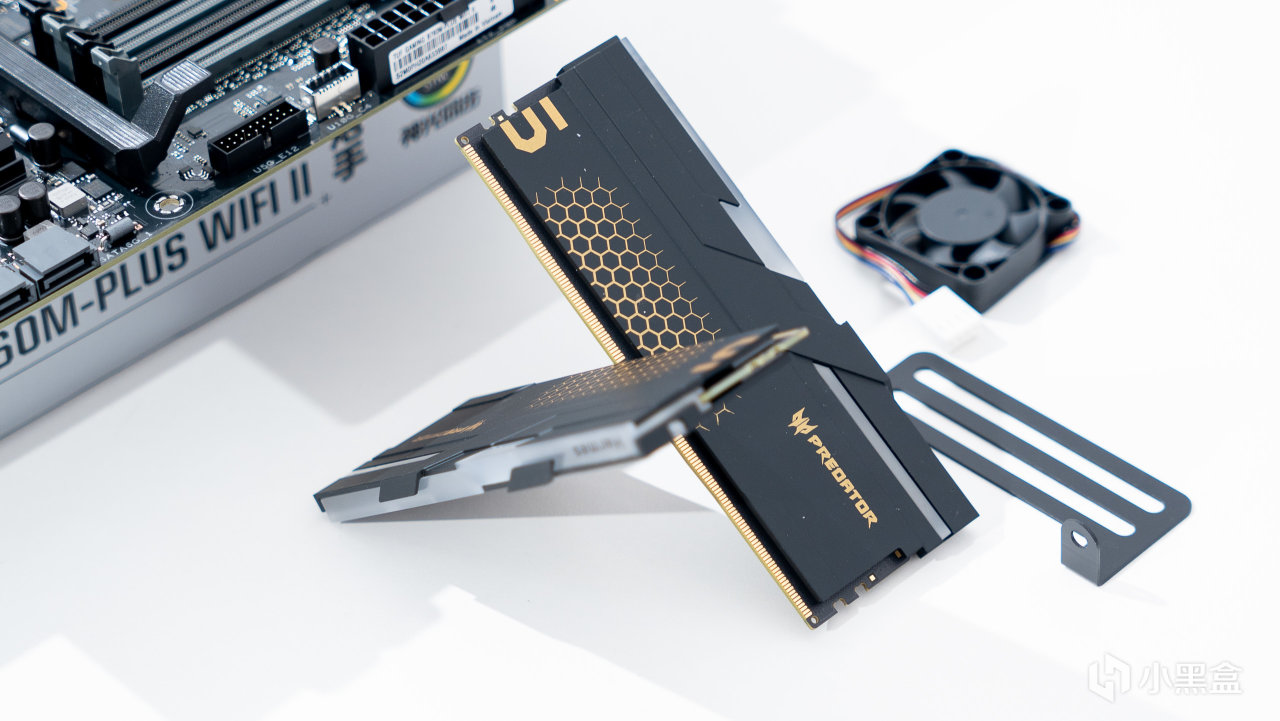 外观上,这款黑色的宏碁掠夺者 Hermes冰刃系列 DDR5 7200MHz 24GB x2黑色版本,外观表面还有些磨砂质感,内存拿在手里分量十足,此外这款内存还为玩家提供了一个辅助内存散热的小风扇,而且除了支架之外,还提供了一个4cm 的定制内存风扇。别看这款风扇很小,但是依旧可以保持在29.9DB 噪音下提供4.72CFM 的风量来帮助宏碁掠夺者 Hermes冰刃系列内存散热。