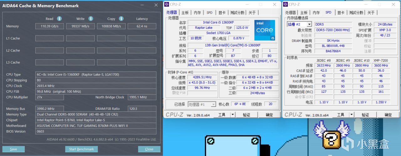 而且供电还有加强。搭配13600KF完全够用了,而且如果你愿意尝试的话,在B760规格的主板上让内存超频至8000MHz也不是难事。这里我也搭配我手上的华硕B760M Plus 重炮手II代以及宏碁掠夺者 Hermes冰刃系列 DDR5跟大家打个样,希望通过真实的测试数据,来解决各位配置选择上的疑惑吧。