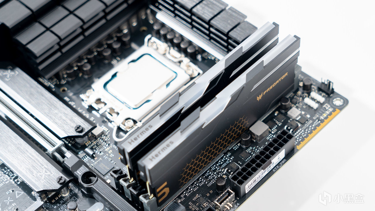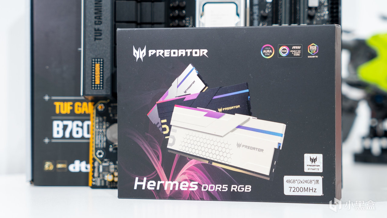 相比非K处理器,13600KF 则可以支持更高的内存频率。在这个人均8000MHz的时代,即便搭配华硕B760M重炮手II代这款主板也可以轻松实现8000MHz的。这里一起测试的内存是宏碁掠夺者 Hermes冰刃系列 DDR5 7200MHz 24GB x2,包装方面还是熟悉的外观包装风格。通过包装也可以看出这款冰刃内存提供了黑色、银色以及白色三个版本选择。