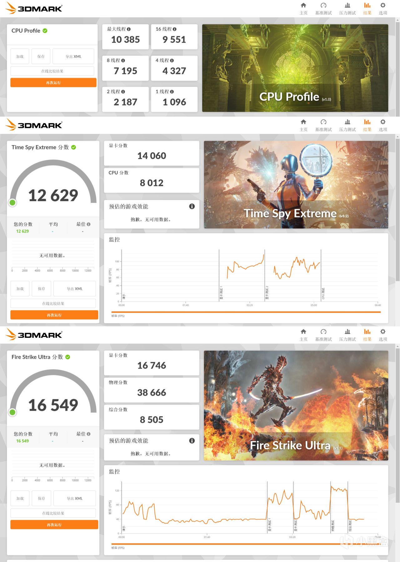 Fire Strike Ultra分数16549,物理分数38666,综合分数8505。
