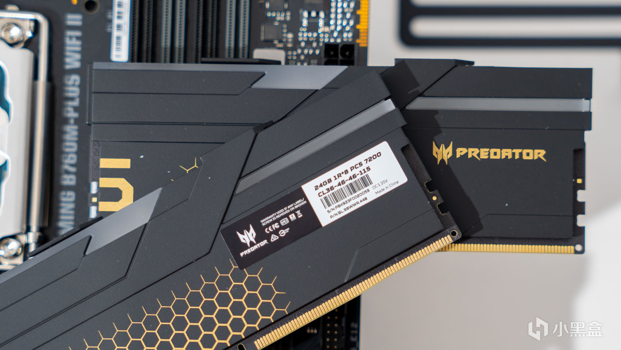 测试的内存是7200MHz 24GB x2 的宏碁掠夺者冰刃系列套条,目前相比16GB x2的套条,这样24GB x2的在容量和频率上都更具优势。