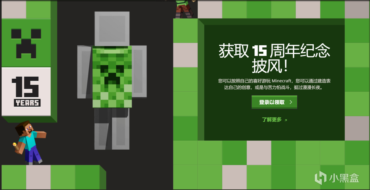 领取可以前往官网登录账号领取,官网地址:https://www.minecraft.net/zh-hans/15th-anniversary