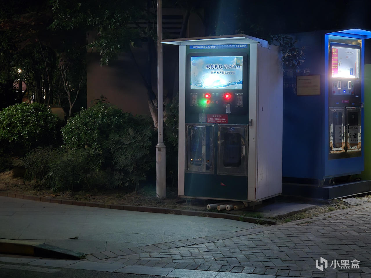 ▼在有高光的一些场景,表现也非常不错,亮处的灯光可以很好的压暗并保留细节,暗处细节也很丰富。另外,整体的白平衡非常稳定,并没有因为路灯灯光的颜色和净水机背景灯的颜色而漂移,很好。