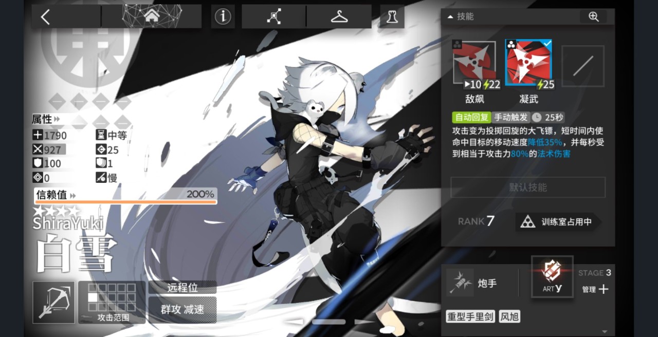 东国的刺客派头,超大的手里剑(额...也许不是)造成群体伤害!总体来说非常全面的干员,什么地方全面?哼哼