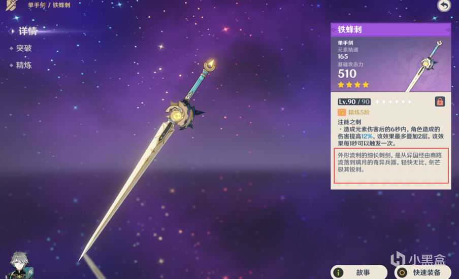 之前,从这把剑的描述中我们可以得知,它是从异国流落到璃月的奇异兵器。如今克洛琳德用这把武器决斗,也算是解释了铁蜂刺的这个“异国”究竟来自于哪里了。