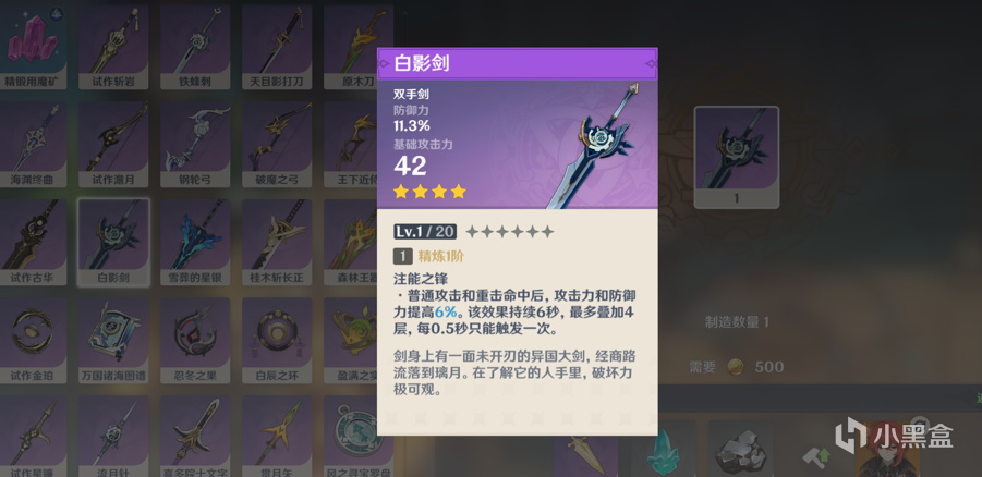 顺便一提,另一把开服4星武器“白影剑”,看说明应该也来源于枫丹。看来,制作组早在1.0版本上线的时候,就已经有了枫丹地图的相关概念,只能说原神项目组的设计概念确实挺超前的。
