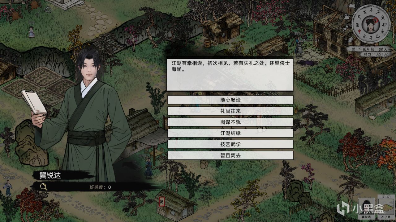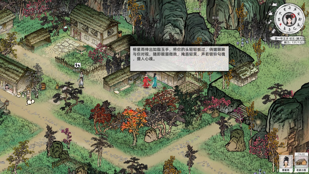 不過遊戲現階段所展現的內容僅有一新手村,未來完整作品能否做到完全的網狀敘事尚未可知,畢竟數十萬字的原創武俠劇情之於單機獨立遊戲確實鮮見,但要塑造一個完整的江湖則遠稱不上多。