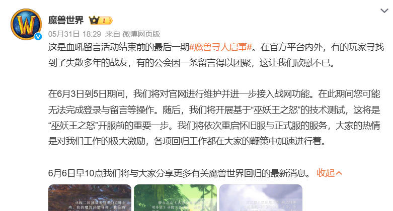 再結合魔獸官方的動態,6月6日或許就是國服迴歸的日子。