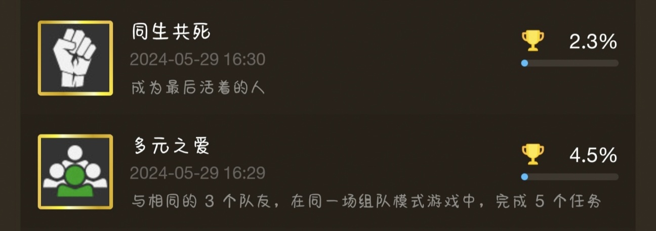 聯機成就就真的只能看自己找人了,我找的舍友和我一起打的,因爲聯機的成就我還請了我們宿舍每個人兩杯蜜雪冰城