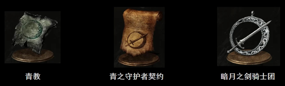 青教在二代裏沒有起源,或者說是其來源已被遺忘。但在三代中這個問題有了明確答案:青教的“青”就來源於月亮的月光,而守護青教信徒的青之守護者,其起源就是暗月之劍。他們的使命都是相同的——守護傳火之人。