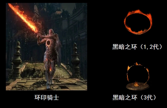 爲了抵禦深淵,葛溫將環印騎士的武器連同他們身體都一同設下火的封印。經過深淵與火兩者共同的淬鍊,環印騎士具有生命最本質的特徵——黑暗之環(Dark Sign)。