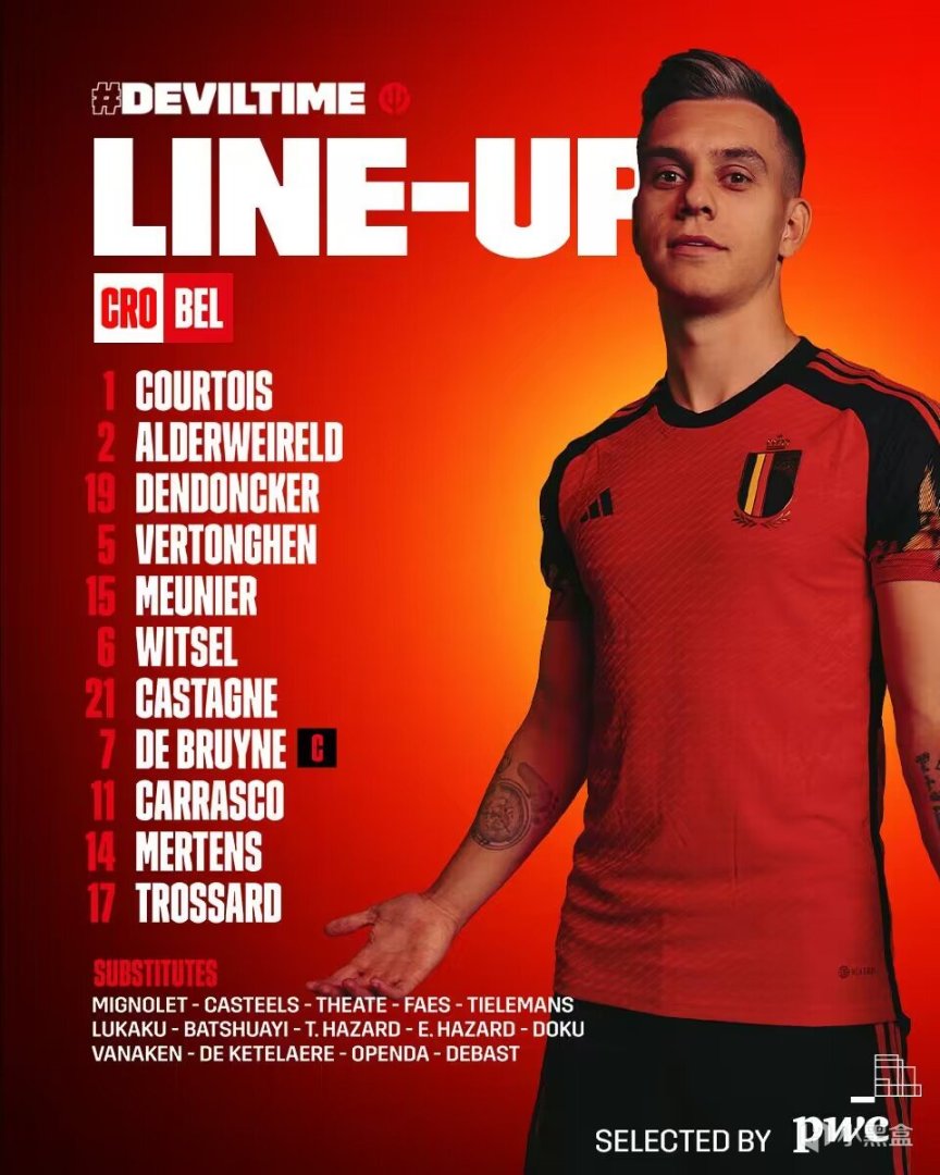 替補:12-米尼奧萊、13-卡斯蒂爾斯、3-西特、4-法斯、26-德巴斯特、8-蒂萊曼斯、20-瓦納肯、9-盧卡庫、10-阿扎爾、16-小阿扎爾、22-德凱特拉雷、23-巴舒亞伊、24-奧蓬達、25-多庫