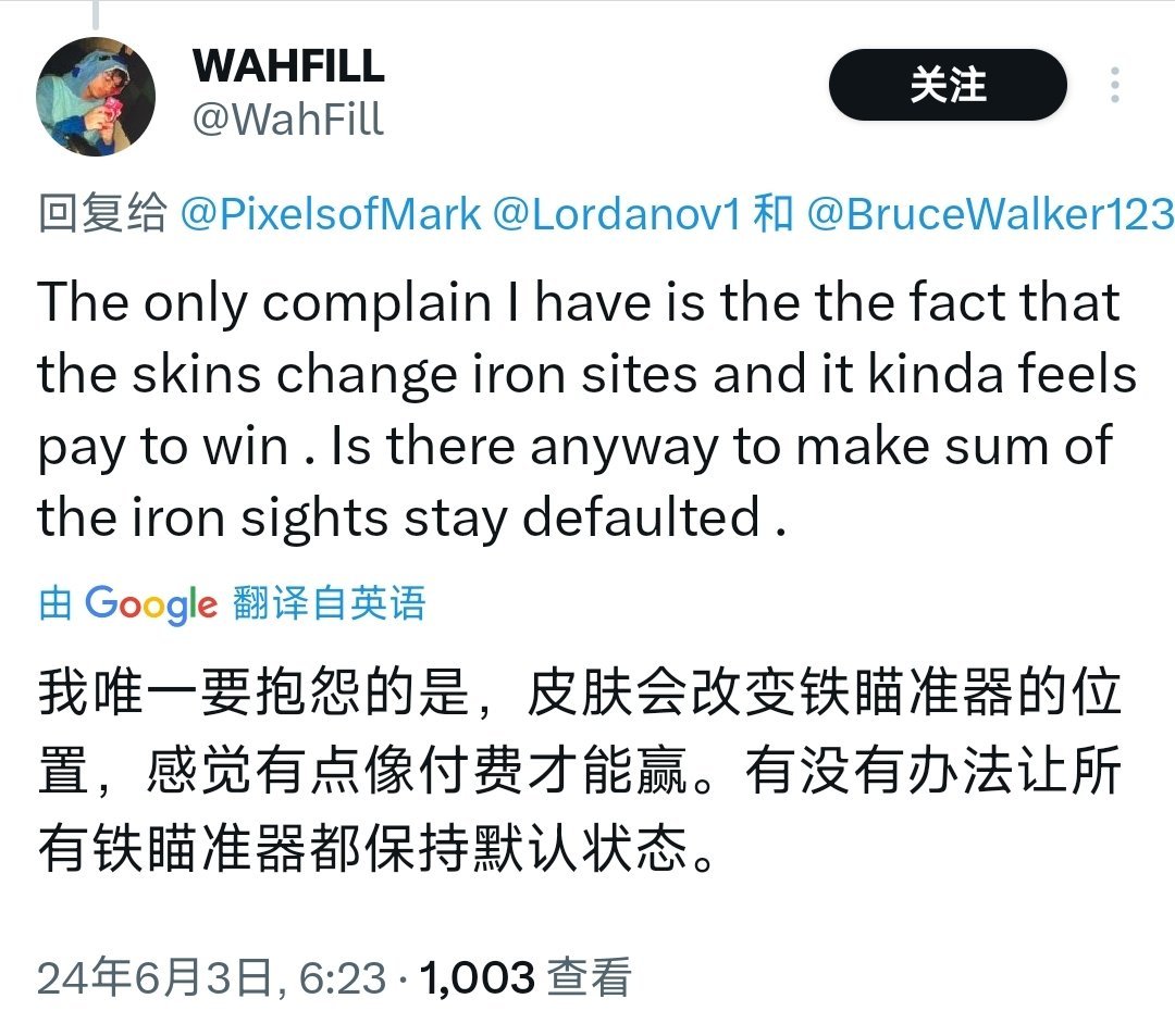 Q6:有些皮膚改了機瞄,這不是 P2W 嗎?