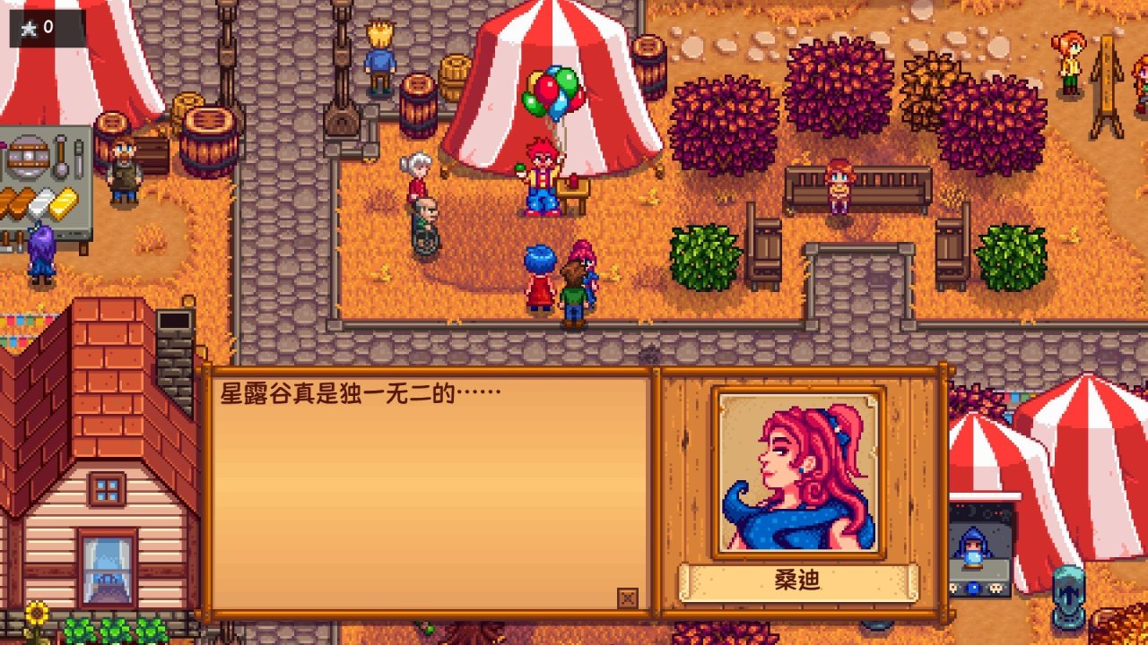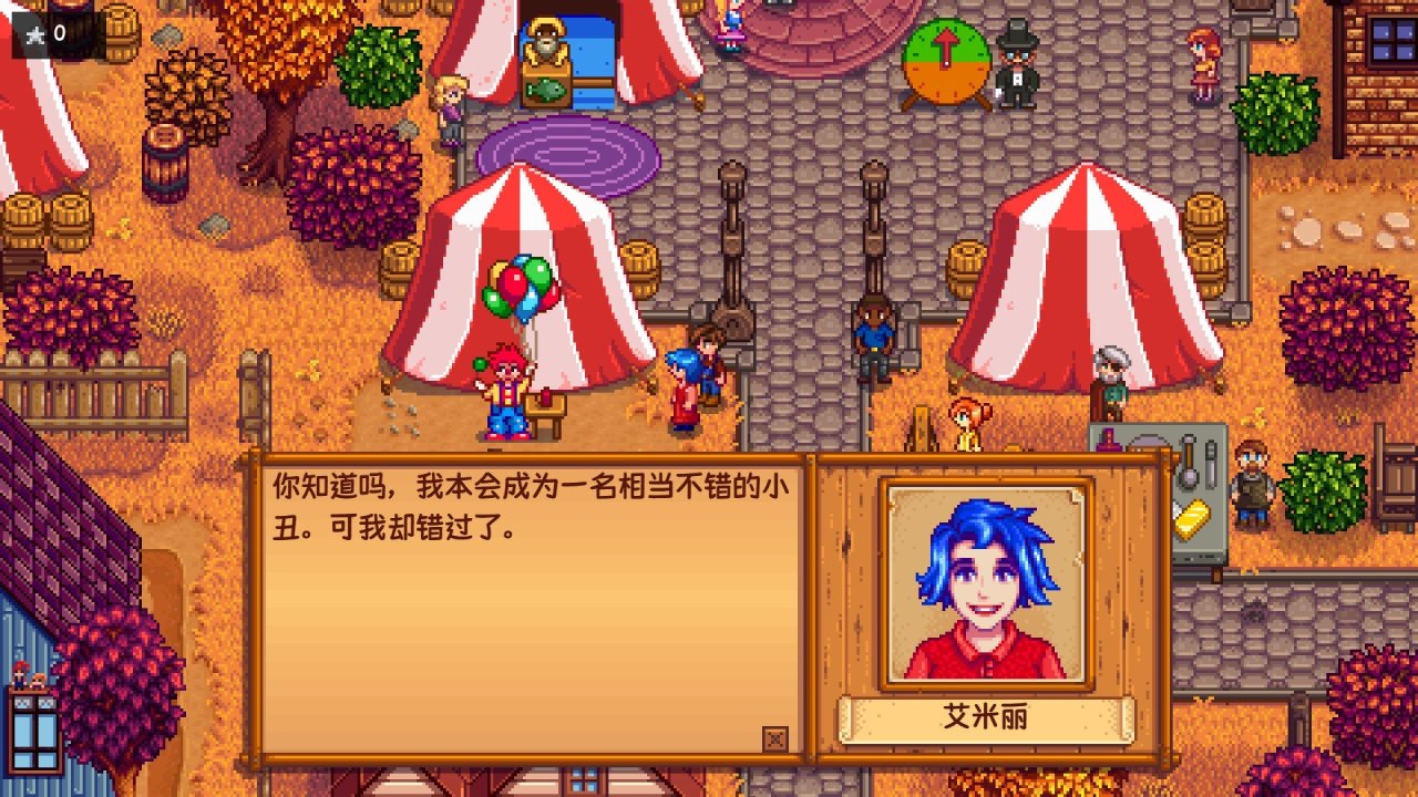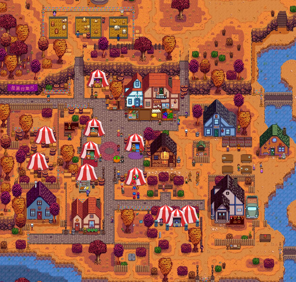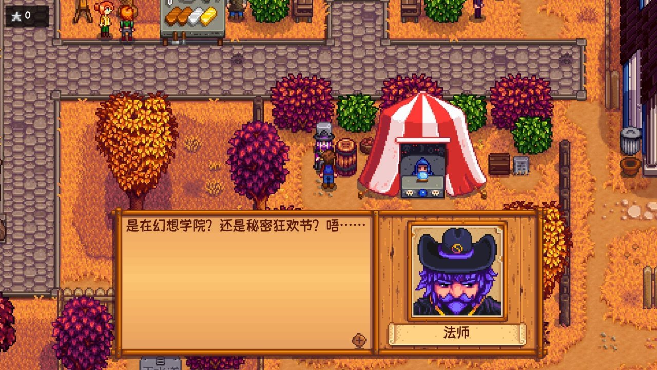 星露谷展览会是游戏中的一个节日,于每年秋季16日的早上9.—下午3.之间举办,我们只要在这期间进入鹈鹕镇就能参加了,不管大家从哪里进入小镇(下水道,山区,矿车,煤矿森林,海滩),最后出现的地方都只会在从公交车站进入小镇的那个位置,我们在早上9.之前是不能进入小镇的,当我们进入节日场景后,时间就会一直静止,只要我们不离开节日场景,节日就一直不会结束,当我们离开节日场景后,节日会马上结束,我们会被传送到家门口,时间变成晚上10.