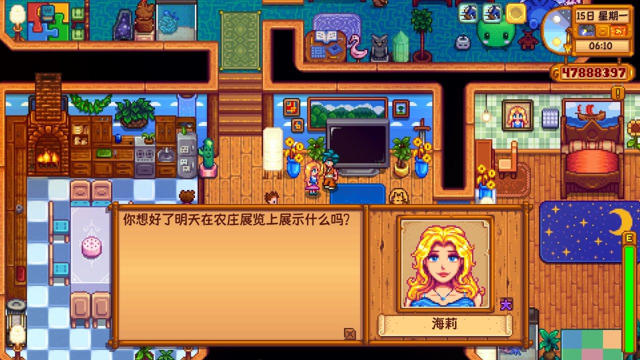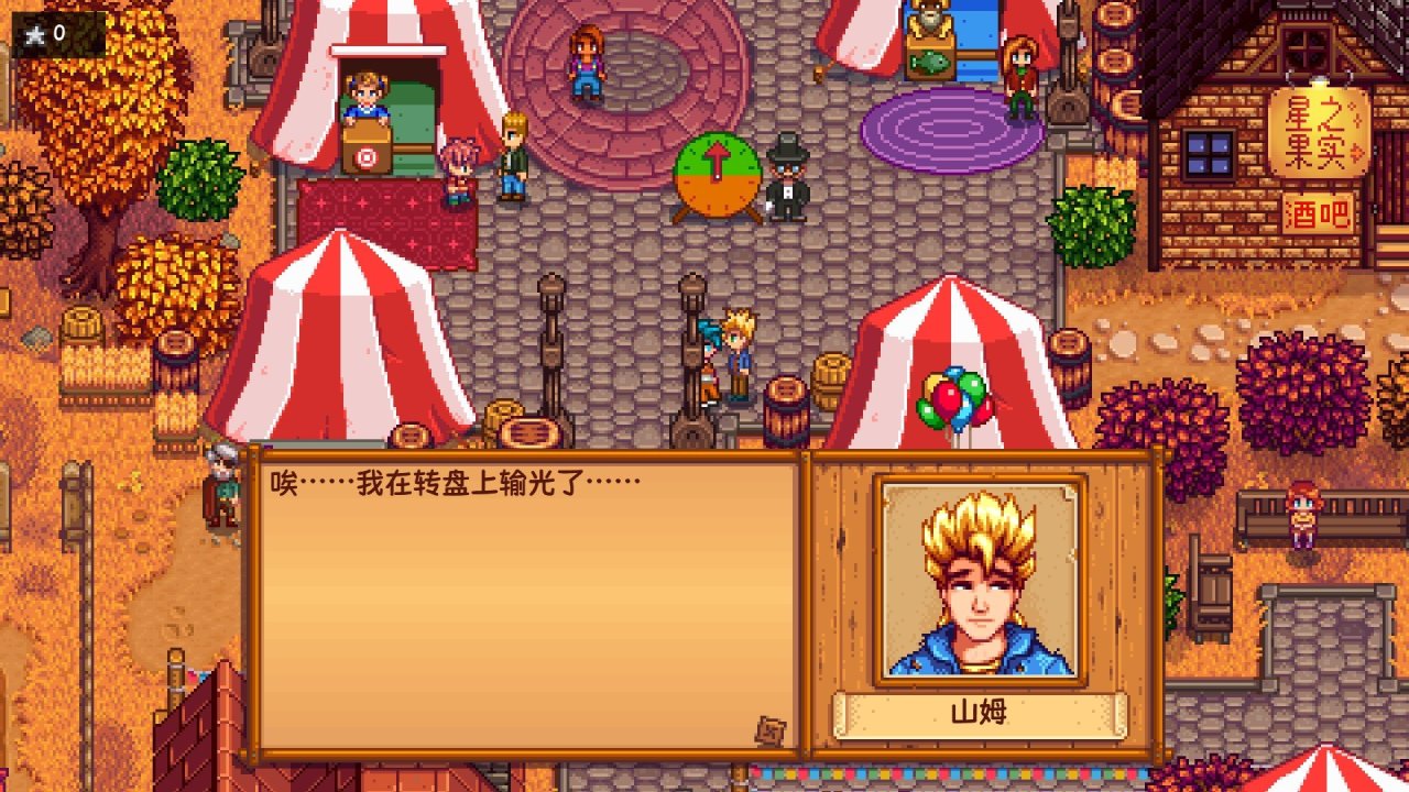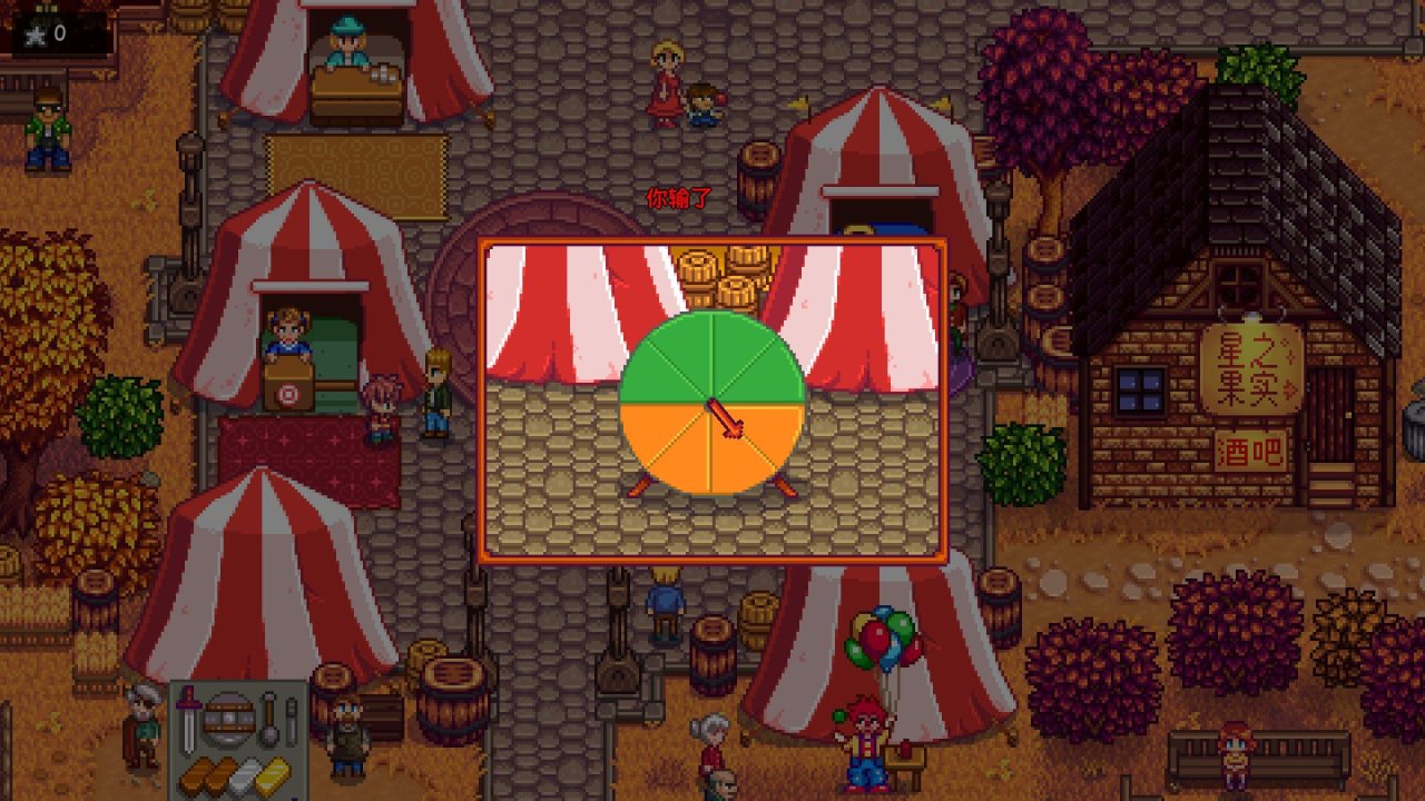 以上就是星露谷展览会的八个主要活动了,总结下来就是会钓鱼的去玩钓鱼小游戏,不会钓鱼/不想钓鱼的就去玩弹弓小游戏,然后放点物品评评分,最后可以一直玩小游戏,也可以去转盘均注,把商店里的物品换完就能回家睡觉了,下面开始分享细节彩蛋!