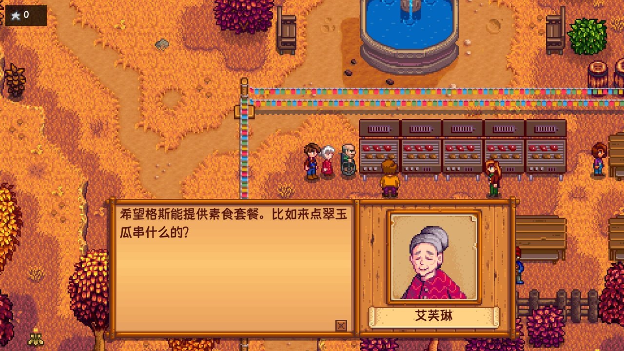 不过其实具体的活动设施没有变化,只是布景和人物对话会有所改变,主要还是游戏作者担心大家对节日有点腻了,增加了点新对话和新布景来提高大家的新鲜感,下面就进入第二部分,具体讲讲星露谷展览会是玩什么的,怎么玩