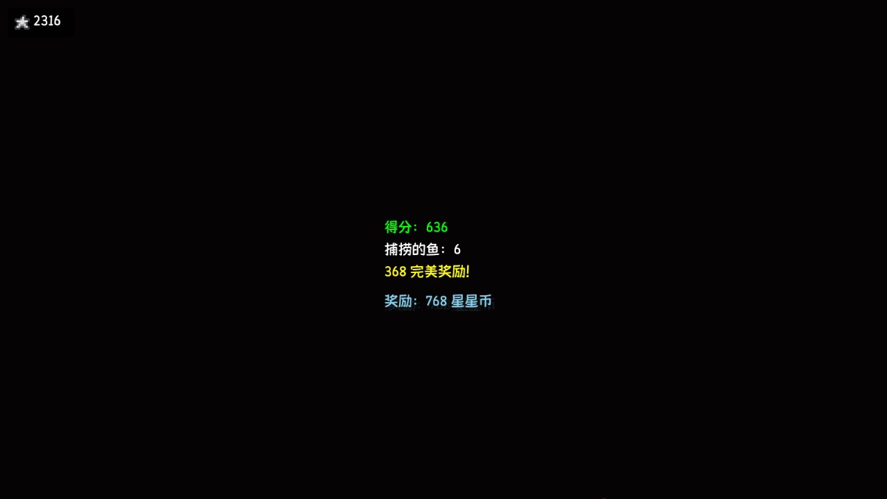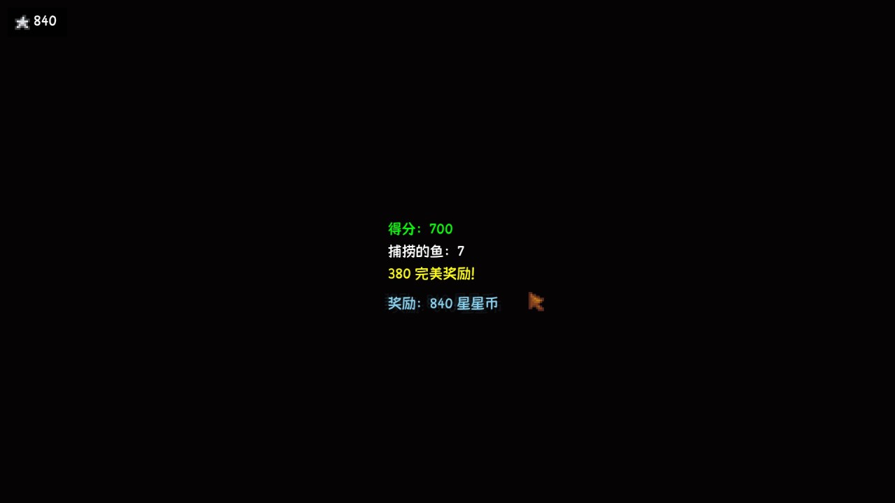 下面是我钓了三次鱼的数据,平均一局在700星星币以上,前两次都是因为有鲶鱼,这游戏里面最高分的鱼就是鲶鱼,只要你钓到鲶鱼得分都是很高的,我第三次一条鲶鱼都没出现,全是很简单的鱼,就算我七条全完美也只有700多星星币,所以钓鱼技术好的推荐去玩钓鱼游戏,来星星币超快,如果你钓鱼技术不好,在第一年又没怎么钓过鱼,自己钓鱼等级很低的,就不要去玩这个游戏了,因为这游戏鲶鱼出没频率挺高的,你钓不上鲶鱼的同时还不能保证自己完美率,一局可能就钓个两三条,最后星星币就只有200出头(我用新档尝试过,钓鱼条很短,导致上鱼率和完美率都低,最后耗费1分40秒就拿200多的星星币)