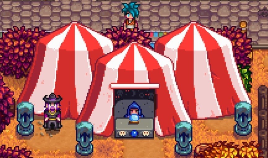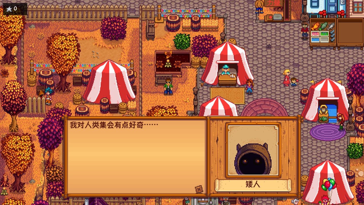 在1.6更新后的偶数年节日中,矮人会出现在星露谷展览会上,如下图所示