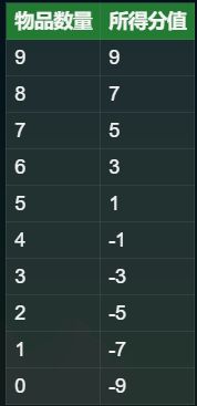 ②数量分:9分(总之只要你把九个位置都放满物品,不管放什么都能获得9分)