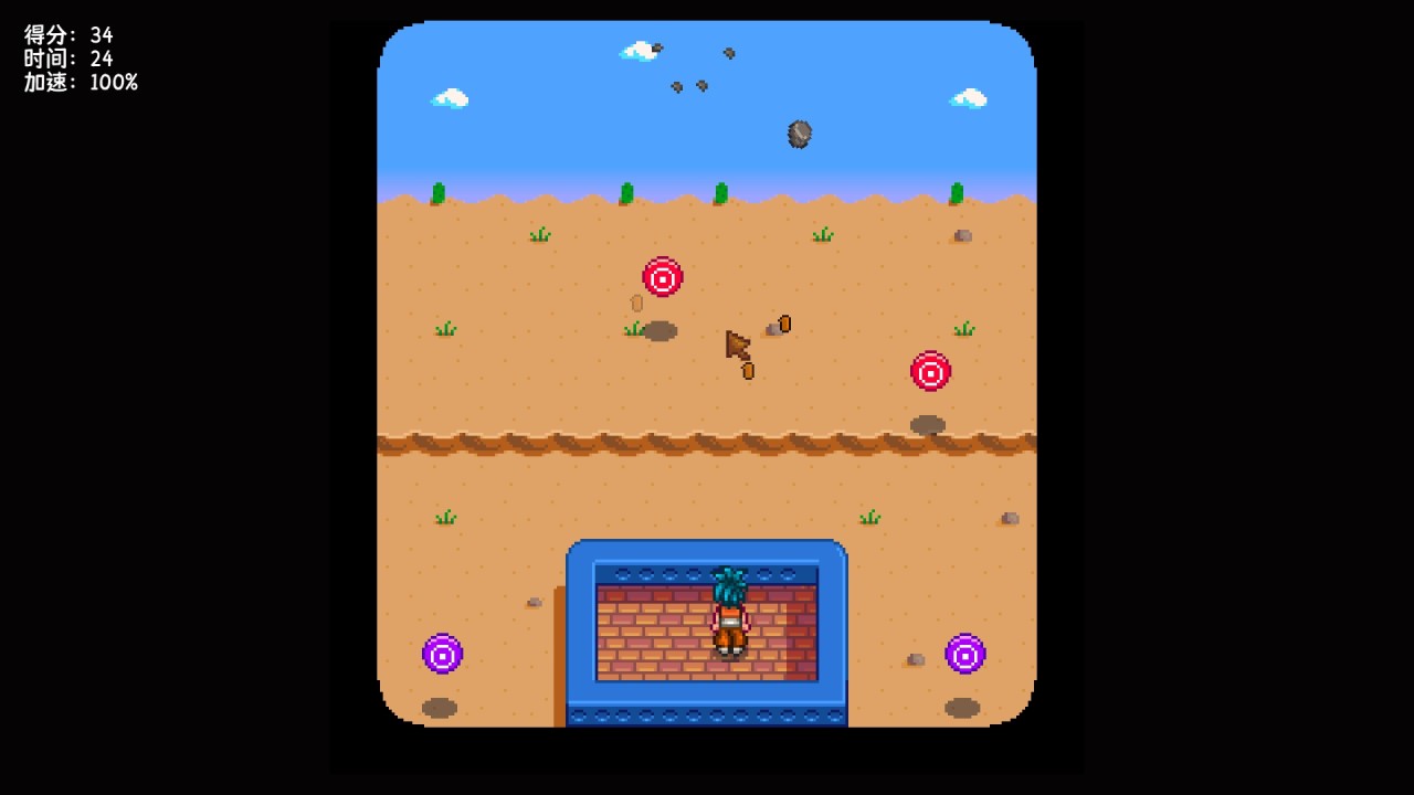 50金玩一局,用弹弓射击目标得分,红色的靶子得一分,蓝色的靶子两分,紫色的靶子五分,最后会根据你的准确率(也就是击中目标的命中率)给你的总分数乘上一个系数。这个游戏一局40秒,十分简单,基本上你随便玩玩都能场均拿250左右的星星币,不会钓鱼或者不喜欢钓鱼的就来玩这个,也是不错的选择,我之前玩钓鱼小游戏的时候就嫌钓鱼过程太慢太无聊了,就经常玩这个