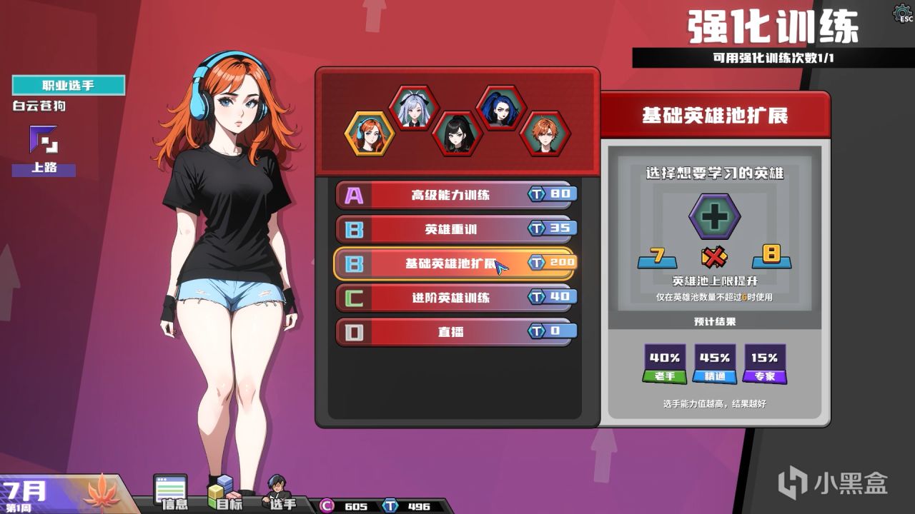 游戏的主要部分就是比赛和训练,训练可以提升一个队员的某个方面,比如英雄熟练度、英雄池数量或者基础属性,也可以直播赚米。日常训练的模块排布比较有意思,加入了随机成功和大成功使得这一部分也不无聊。战斗部分就是主体,就是稍微有点时间长,一开始是许多没搞懂,中间倒是蛮津津有味的,后面的就枯燥了公式化操作,毕竟手中的牌组基本都一样,只是抽取的顺序不一样,偶尔运气好了牌序好就能很顺手的破局,有时候鬼抽耗时就比较长。