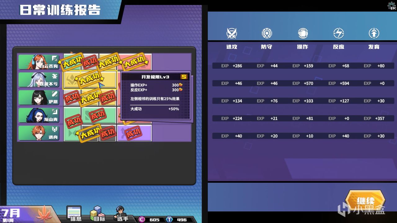 战队成功进入乙级联赛,意味着可以更换和招揽队员,然而看着努力了一个赛季的队员们,我实在不忍心下手更换,就选择了继续信任和托付。队员们口头上没有说过什么,但是日常训练却日益起劲,成功与突破比比皆是,从过去的毛头小子逐渐成长为可以互相信赖的战友。