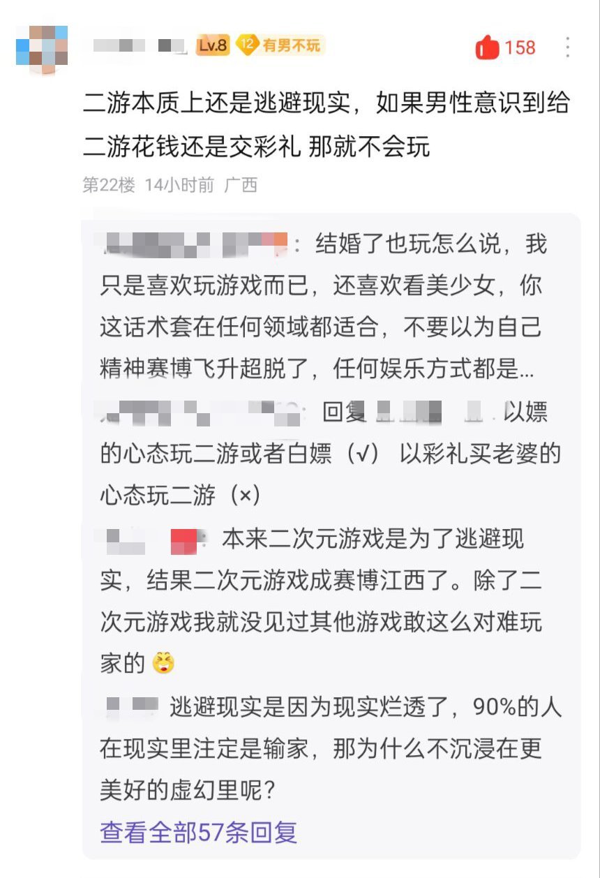 xx檔案因出現了雀魂送學生去誓約與動畫支持百合等事件起了“停氪棄坑”的節奏,競技場人權卡伊呂波池與初音聯動池暴死。許多ba玩家對遊戲出腦後緊盯着悠星總裁姚蒙的新作“星塔旅人”,化身1w賽博厲鬼。NIKKE部分玩家在經歷了RE0聯動與“大女主”文案變動後選擇棄坑。自此大韓雙c的神話結束,二遊喰種塵白繼續發力。