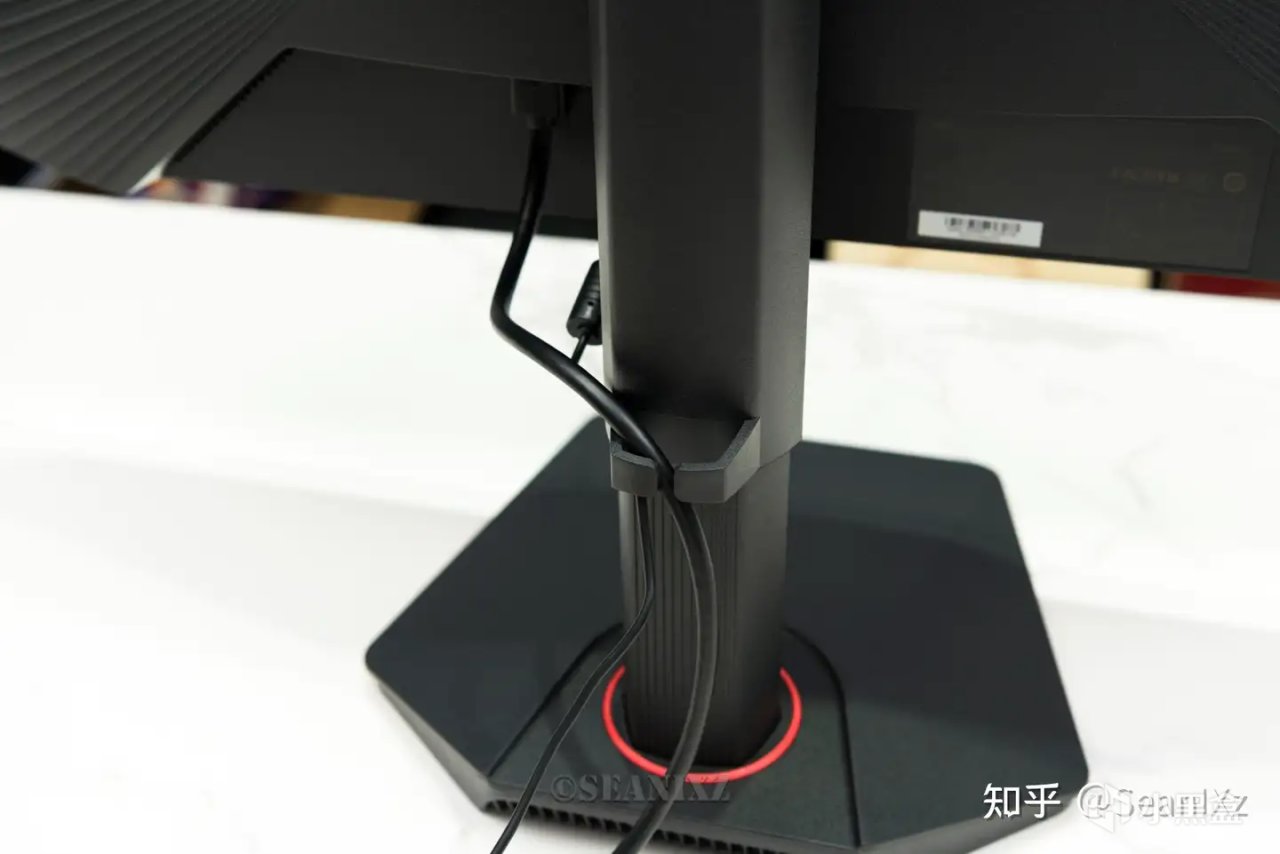 另外还带个穿线孔,方便理线,增加整洁度,HKC猎鹰II代在底座的设计上用心了。
