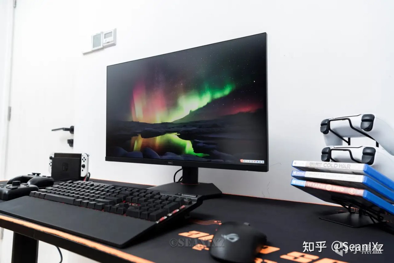 比如我的桌面就是PC+PS5+Switch的配置,接口不多不少,正好可以完美适配我的需求,3.5mm音频接口还可以作为备用音频输出口,可以外接音响,虽然显示器本身不带音响,但通过这个3.5mm音频接口可以把三端的音频输出统一起来,省去了换设备时需要频繁切换的麻烦。