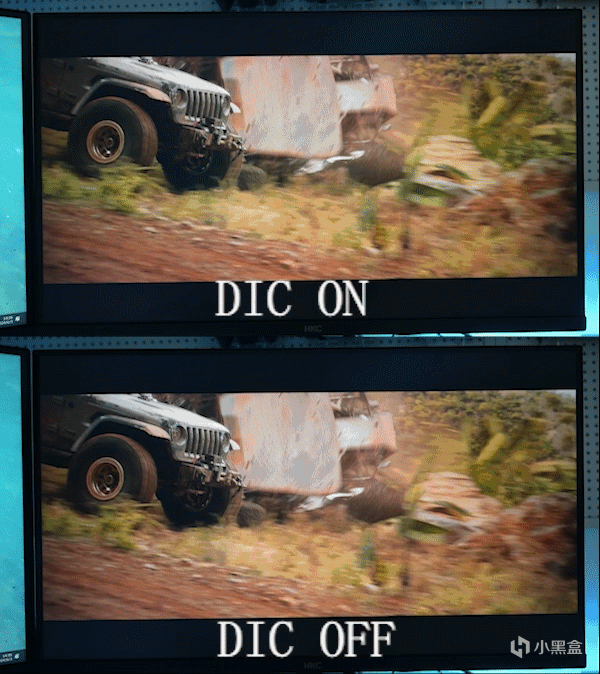 如图,同样的游戏画面对比,开启DIC功能后的HKC猎鹰Ⅱ代G27H2画面明暗对比更强,且没有一层层的细纹拖影残留,视觉效果更好。
