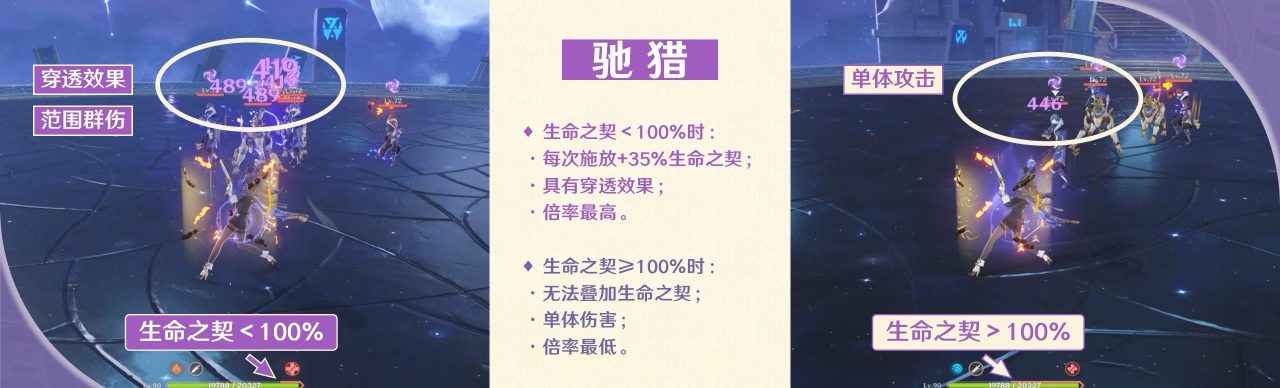 所以一般会建议在生命之契<100%时优先考虑使用驰猎A。