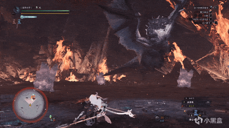 20:煌黑龍飛翔向地火焰吐息無法被鉤爪扇臉打斷,並且會承受吐息時的傷害,所以不要試圖去鉤正在向地火焰吐息的煌黑龍。