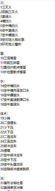 8:飛天螺旋噴火/水,運動軌道是從下到上螺旋狀昇天的,(可以根據運動軌道來預判頭部或者胸口)並且開始和結束都有攻擊判定,躲過開始並不代表結束不會打到你。