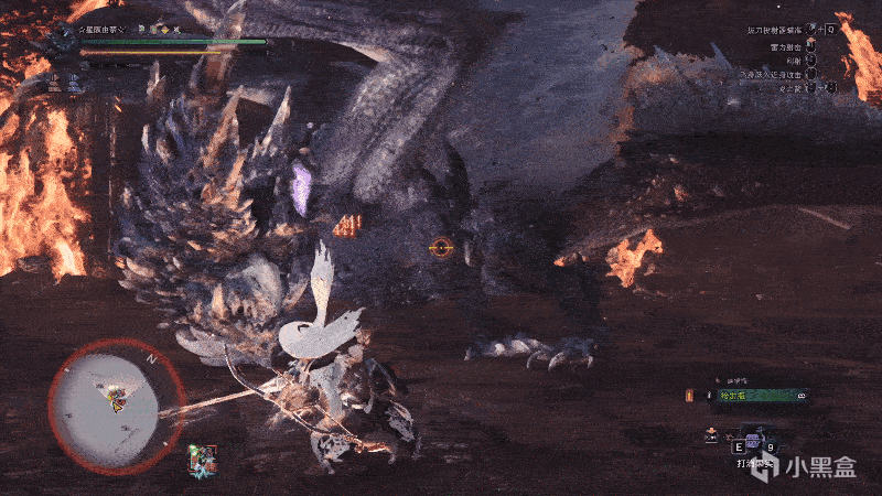 可以看到,如果你正向面對着煌黑龍的頭部,你需要貼着臉打才能讓剛射的每一支箭都打在頭上,