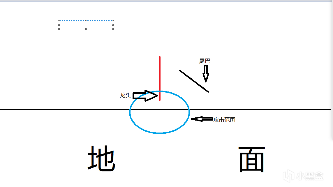 如圖,可以把藍線以上的區域看做是煌黑龍的頭部,呈一個條狀,所以不是一個腦袋,而是一條腦袋。