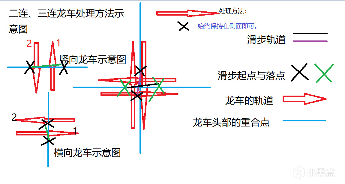這招可派生在短車後,也可派生在後跳三叉火後,和龍車沒啥區別,左右滑步即可。