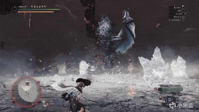 15:煌黑龍飛翔連發口水/冰錐攻擊時,頭部下方是有攻擊判定的。安全位置在頭部後方、胸毛下方。