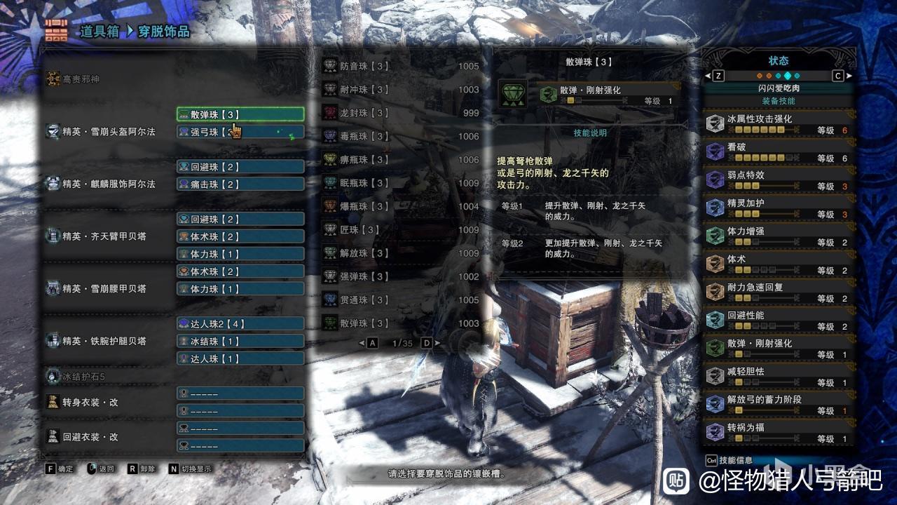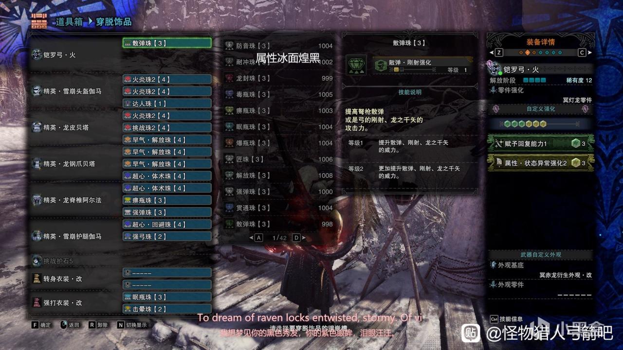 實測兩把傷害還行都是三炸差不多十分鐘左右打完,珠子基本都是這個階段能有的(武器均無剋制)護石也不用這麼高,冰屬性強化保證有3就好了請根據自己的珠子調整,萌新打個二炸還是沒問題(霜牙弓有個優勢就是煌黑飛天的時候可以打麻痹瓶給他射下來)萌新不會算麻痹就在煌黑吐冰息飛天的時候(頭會亂甩)開始打麻痹多打打四蓄剛射很容易就被麻下來了,炸膛倒地可以打曲射單人硬直只需要四個就暈了多一個倒地。