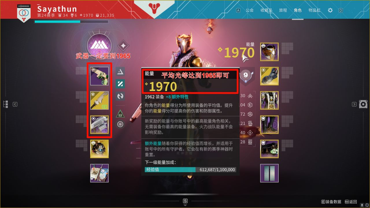 - 首日光等要求:1965(完成傳說主線戰役送一套1960的裝備用於提光)