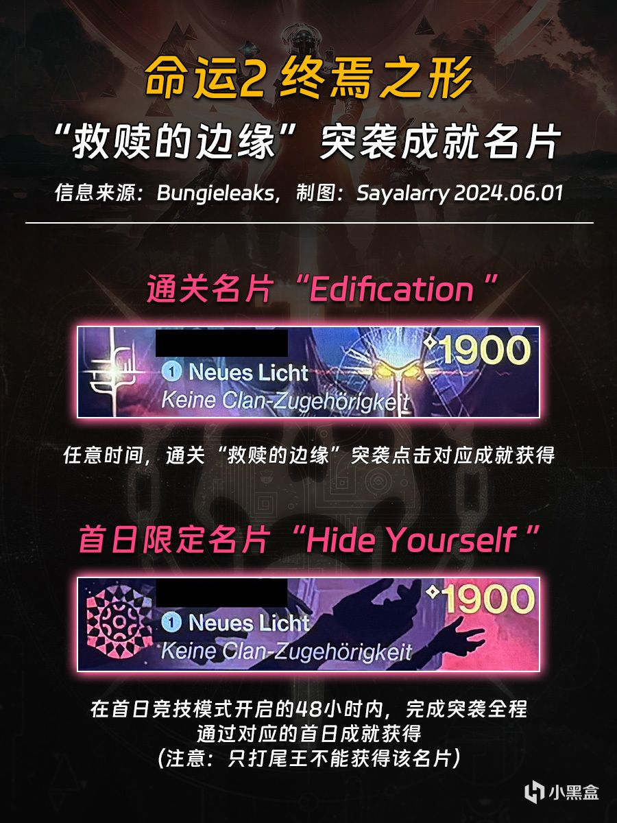 - 在2024年6月8日凌晨1點~6月10日凌晨1點之間,進入“救贖的邊緣”挑戰節點,在其中完該成突襲每一關,可以通過DAYONE的成就獲得該稀有名片