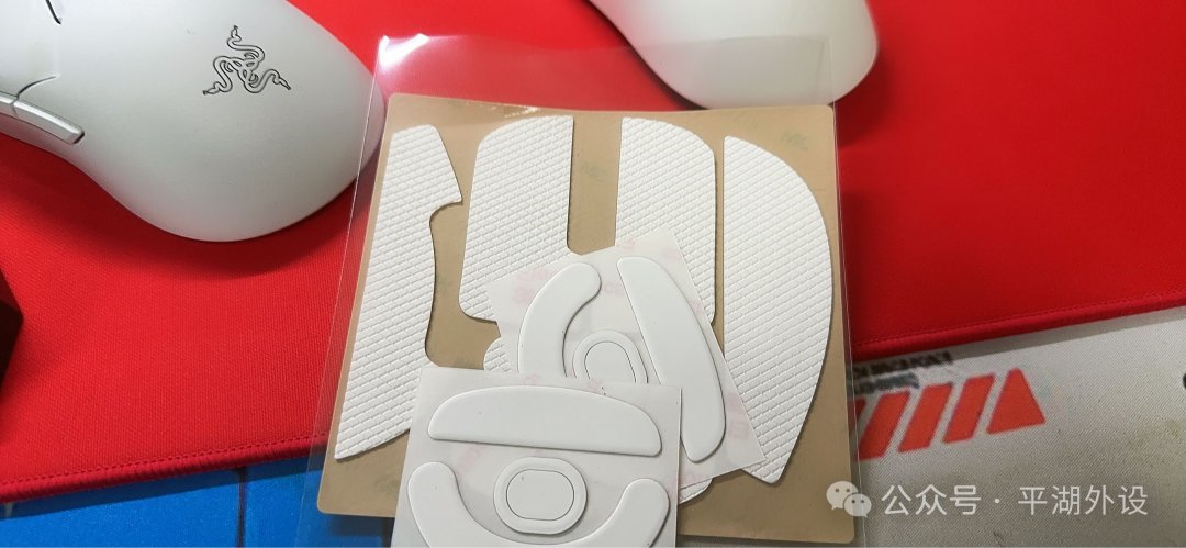 原盒中ATK附贈了兩個大腳貼,至少筆者拿到的兩副大腳貼都有明顯的毛絮,清理了一小會後才貼到鼠標上,咱也不知道這個腳貼這種封裝配件怎麼可以帶着毛絮呢,首發拿到的也不應該是別人退貨的呀。另外原廠的腳貼質量平整度以及契合度在這個價位段的鼠標私以爲並不能算合格,不過標配倆大腳貼還送了一個與鼠標顏色契合的防滑貼就先饒恕ATK了。後續等幾個店鋪出了ATKF1大師版腳貼後替換掉原廠的腳貼(不知道黑色版的大師F1是不是給的黑色防滑貼)