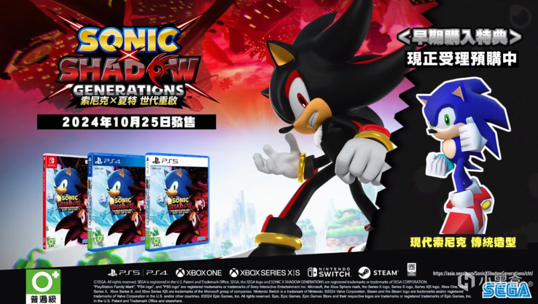 基於2011年《索尼克·世代》重製,包含“索尼克”和“夏特(暗影)”兩部作品,並加入新要素的 《索尼克x夏特 世代重啓/SONIC X SHADOW GENERATIONS》10月25日推出。