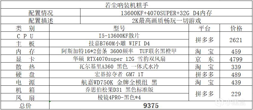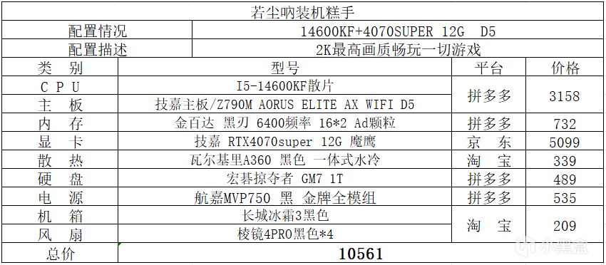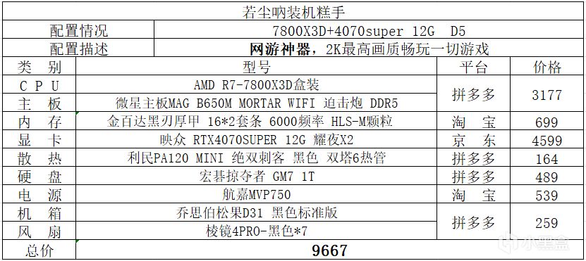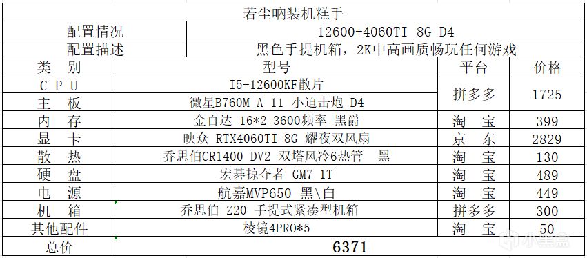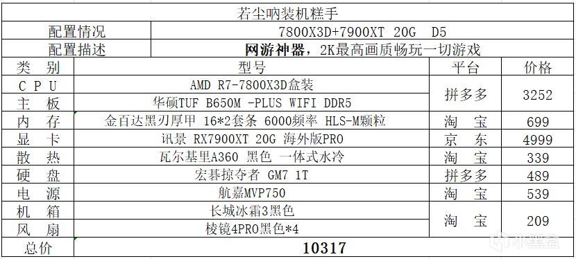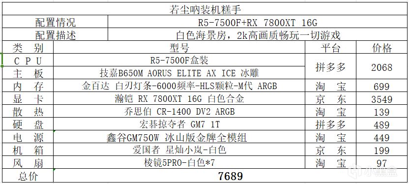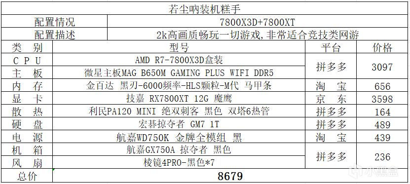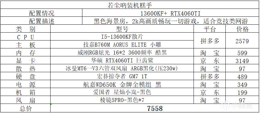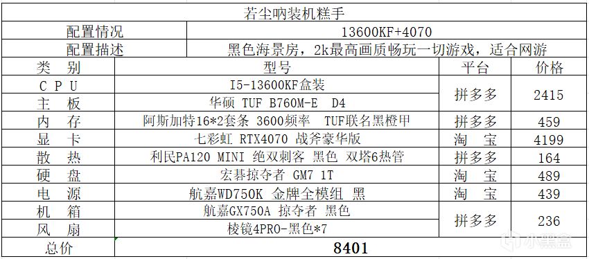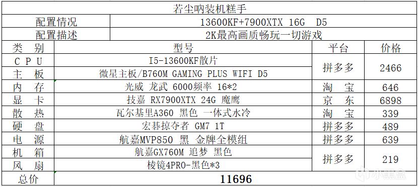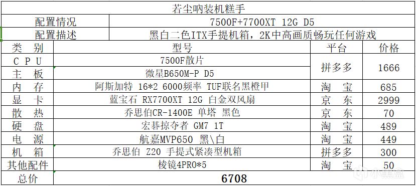 3、本篇配置推荐仍以各个预算区间划分,每个区间给出二种配置方案,以供参考;